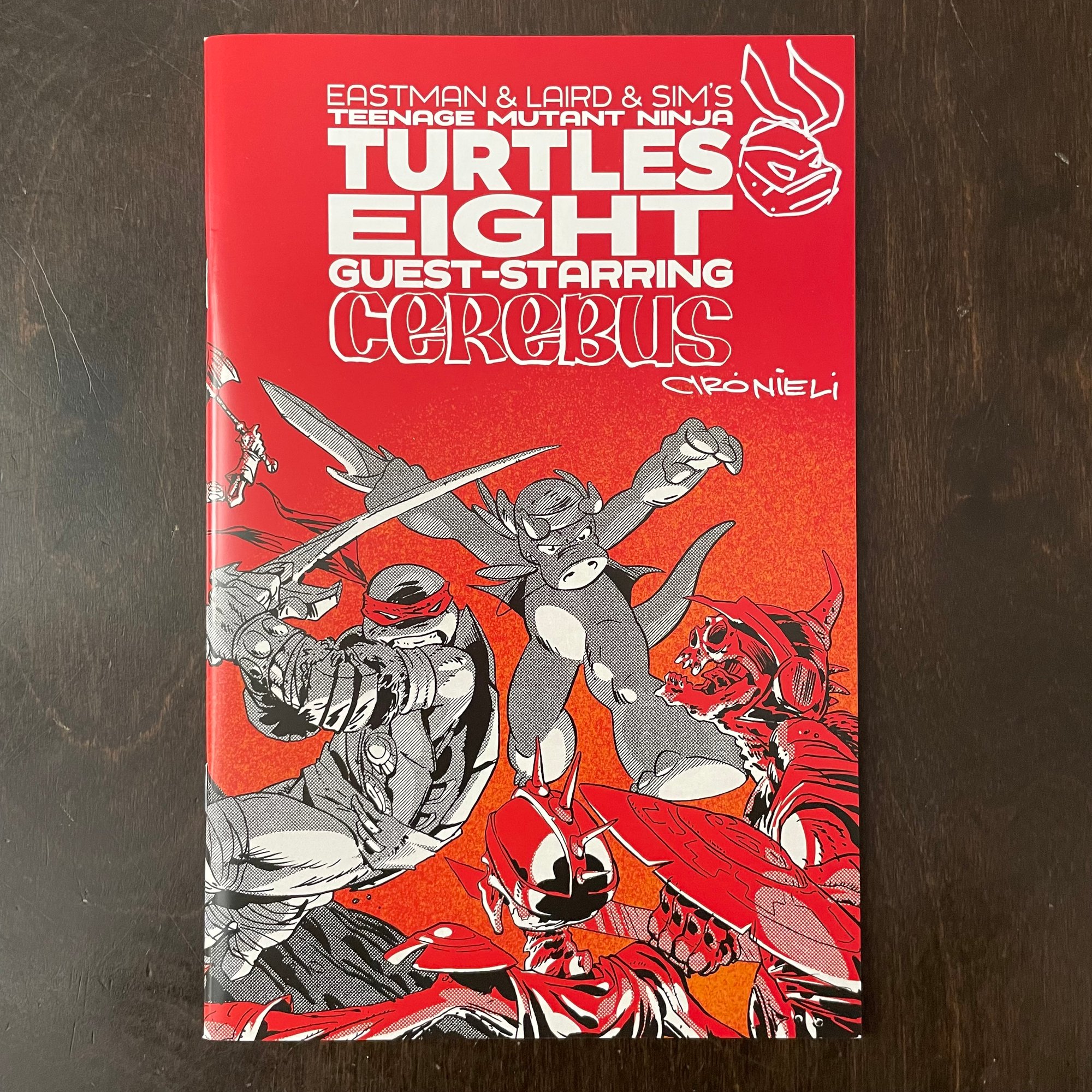 Classic mirage story reprinted with Ciro Nieli Cerebus & Turtles new art wraparound cover
